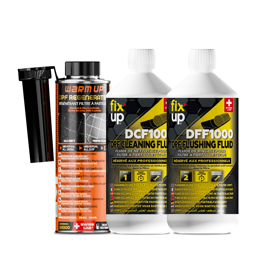 Les dernières normes antipollution visant à réduire les émissions polluantes ont contraint les constructeurs à intégrer des filtres à particules aux échappements VL (depuis 2011) et PL (à partir d'EURO VI). Face à un combustible diesel de plus en plus chargé en biocarburant (14% en EURO VI) et de petits parcours souvent en ville, le FAP s'encrasse et se colmate. Le changement de FAP étant onéreux et contraignant, FIX UP® se présente comme une alternative à travers une solution de nettoyage efficace, économique et applicable à toutes les marques de véhicules.